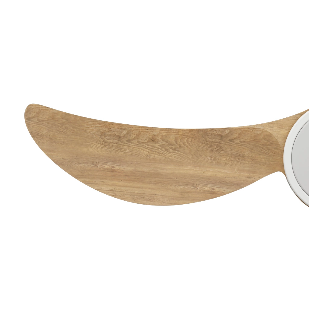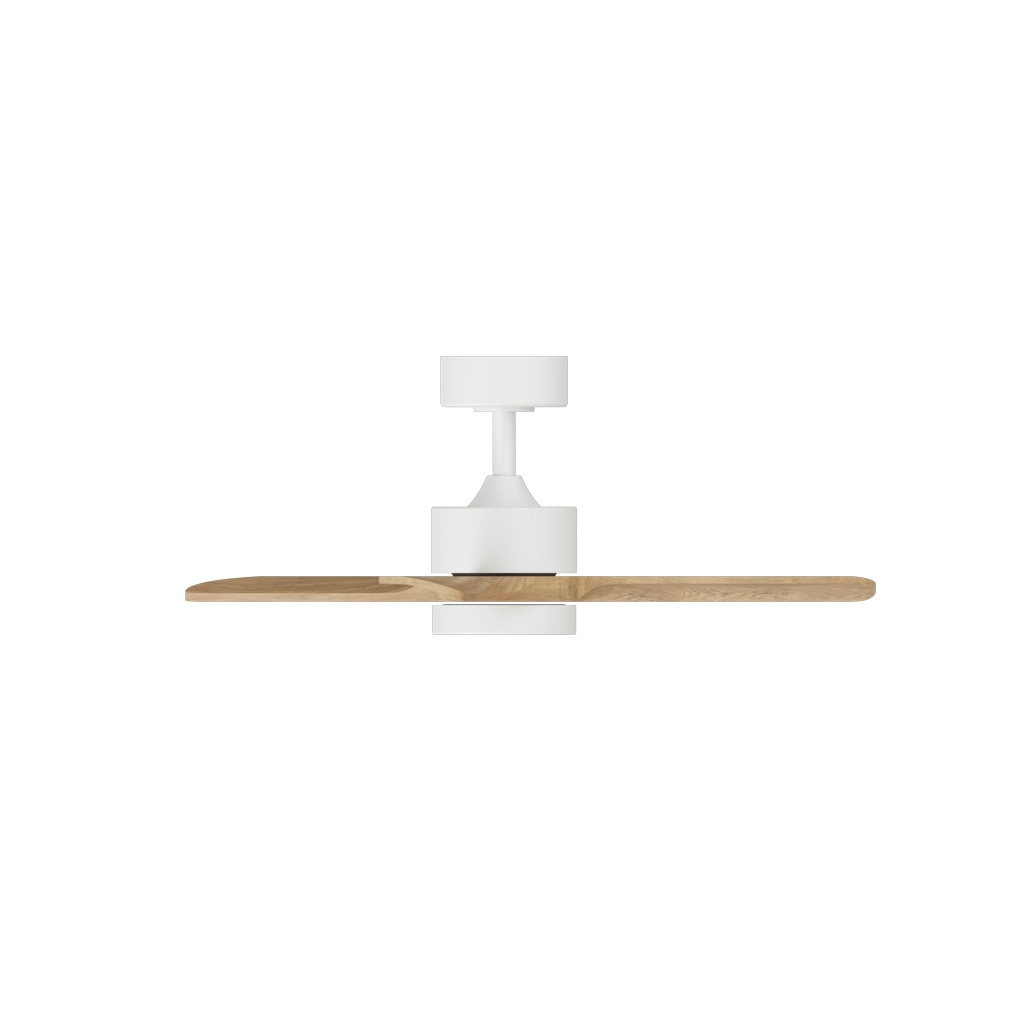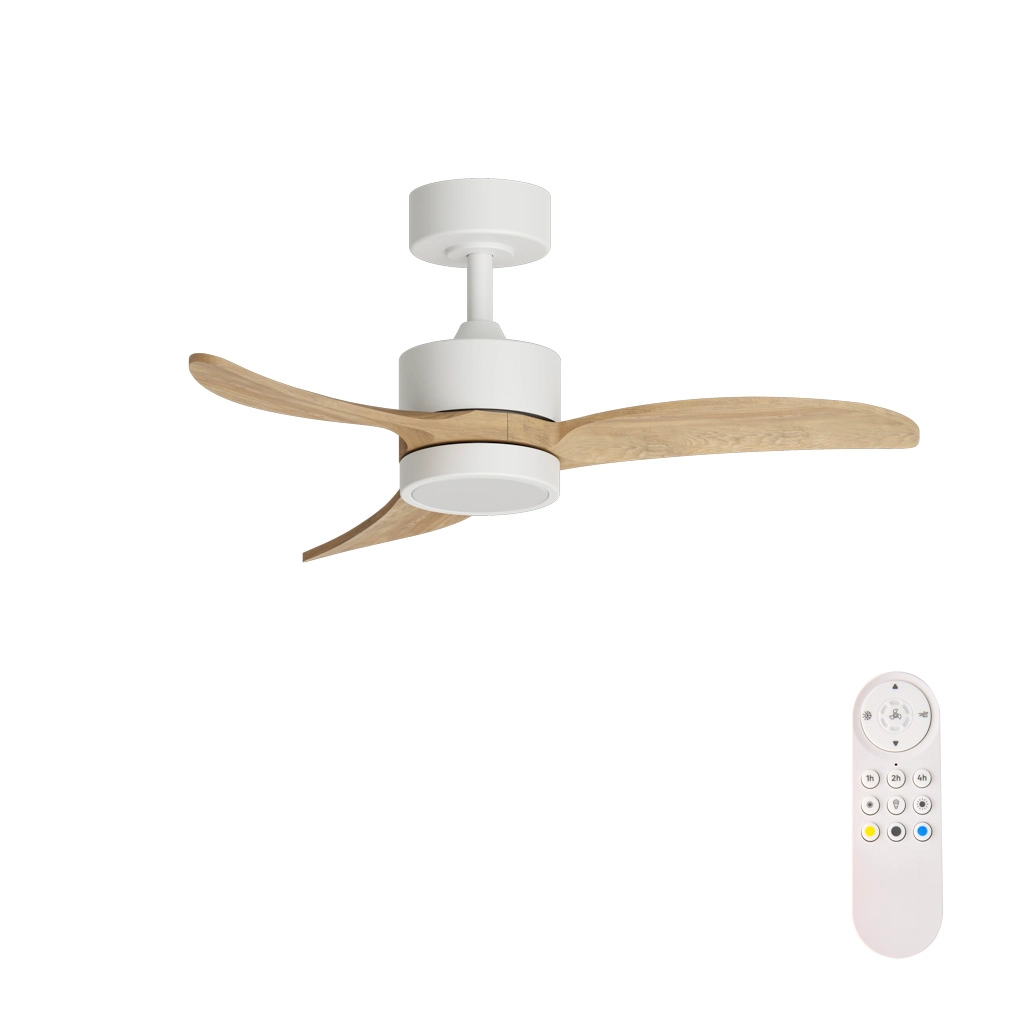 Ventilador de techo ZOE con luz LED integrada y memoria de temperatura de color. Cuenta con un cuerpo